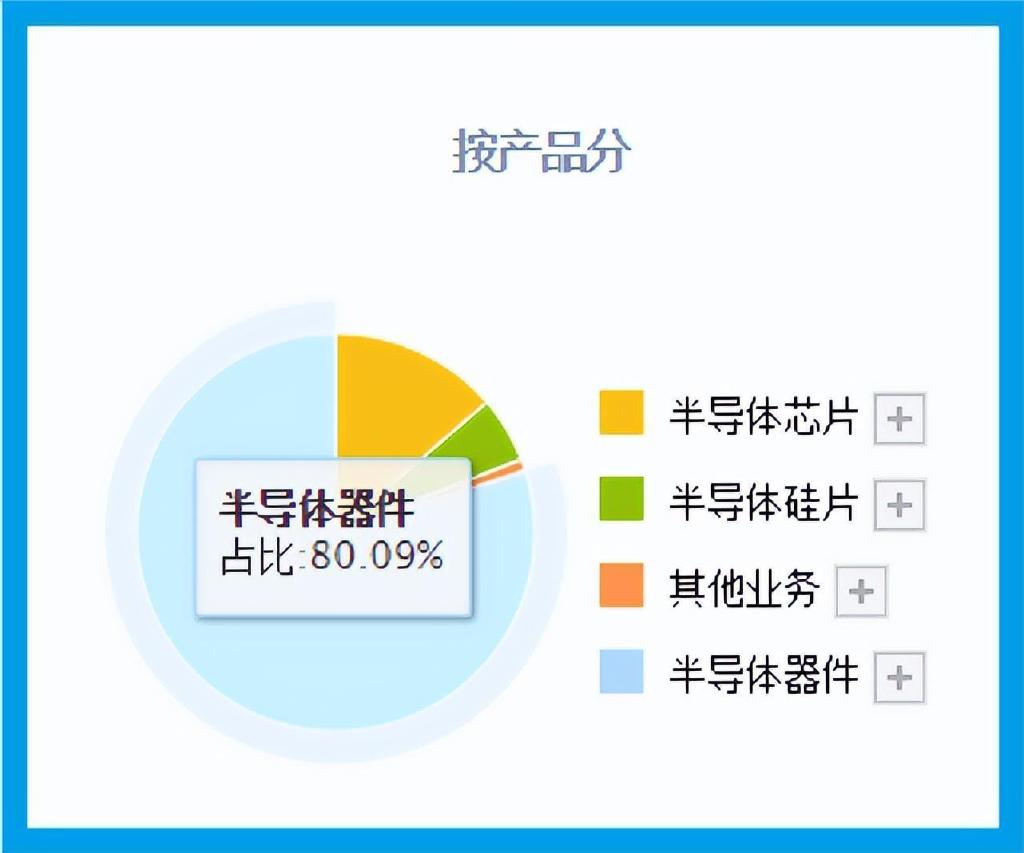 公司半导体器件的收入占比为80.09%★ღ✿★,半导体芯片的收入占比为13.75%★ღ✿★,半导体硅片的收入占比为5.33%★ღ✿★。